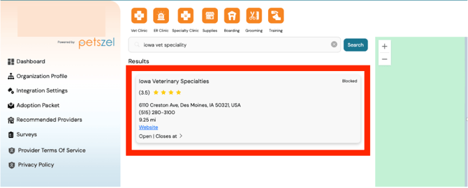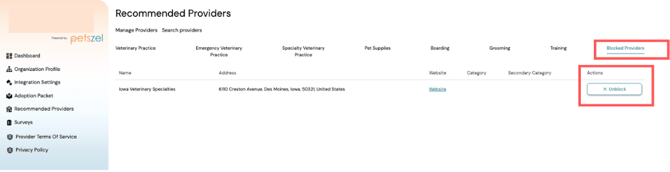 On the Recommended Providers tab in your dashboard, search for the provider you'd like to block using their name or other filters.